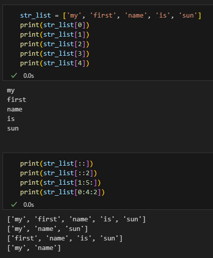 예를 들어 설명하자면 엑셀에서 하나의 column이라고 생각하면 좋을듯 하다. 각 셀은 리스트 내의 하나의 요소라고 보면 된다는.. 암튼 리스트는 양쪽에 대괄호 [ ]를 씌운 형태로 나타내며 리스트 내 자료들은 , (콤마)로 구분한다. 리스트의 인덱싱과 슬라이싱 역시 변수와 동일하게 바라보면 된다. 리스트에 요소를 넣고 삭제하는 몇가지 방법을 습득하면 좋을듯 하다.