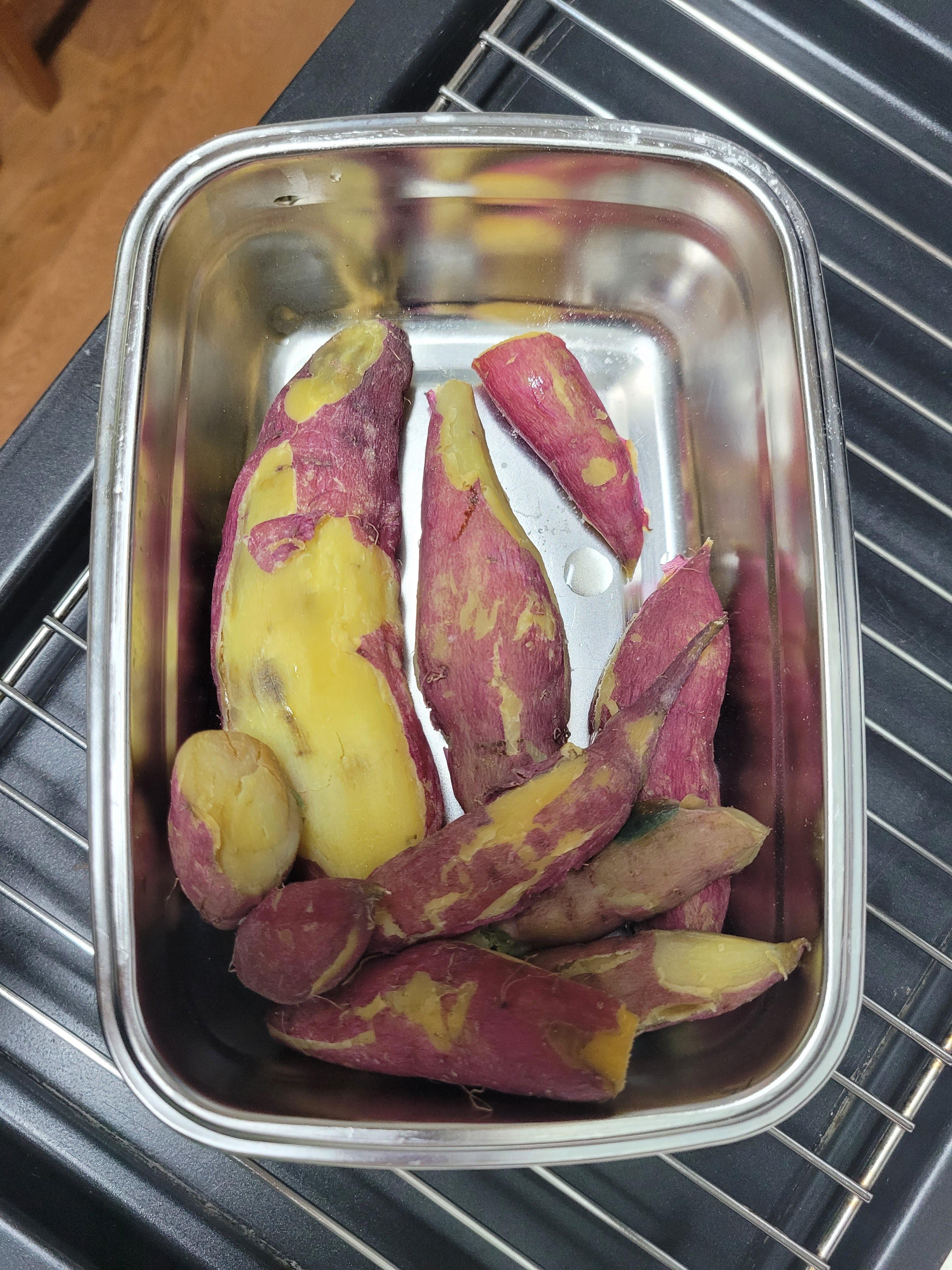 수확한 고구마를 바로 쪄서 먹어보았는데 생각보다 단맛이 적다.