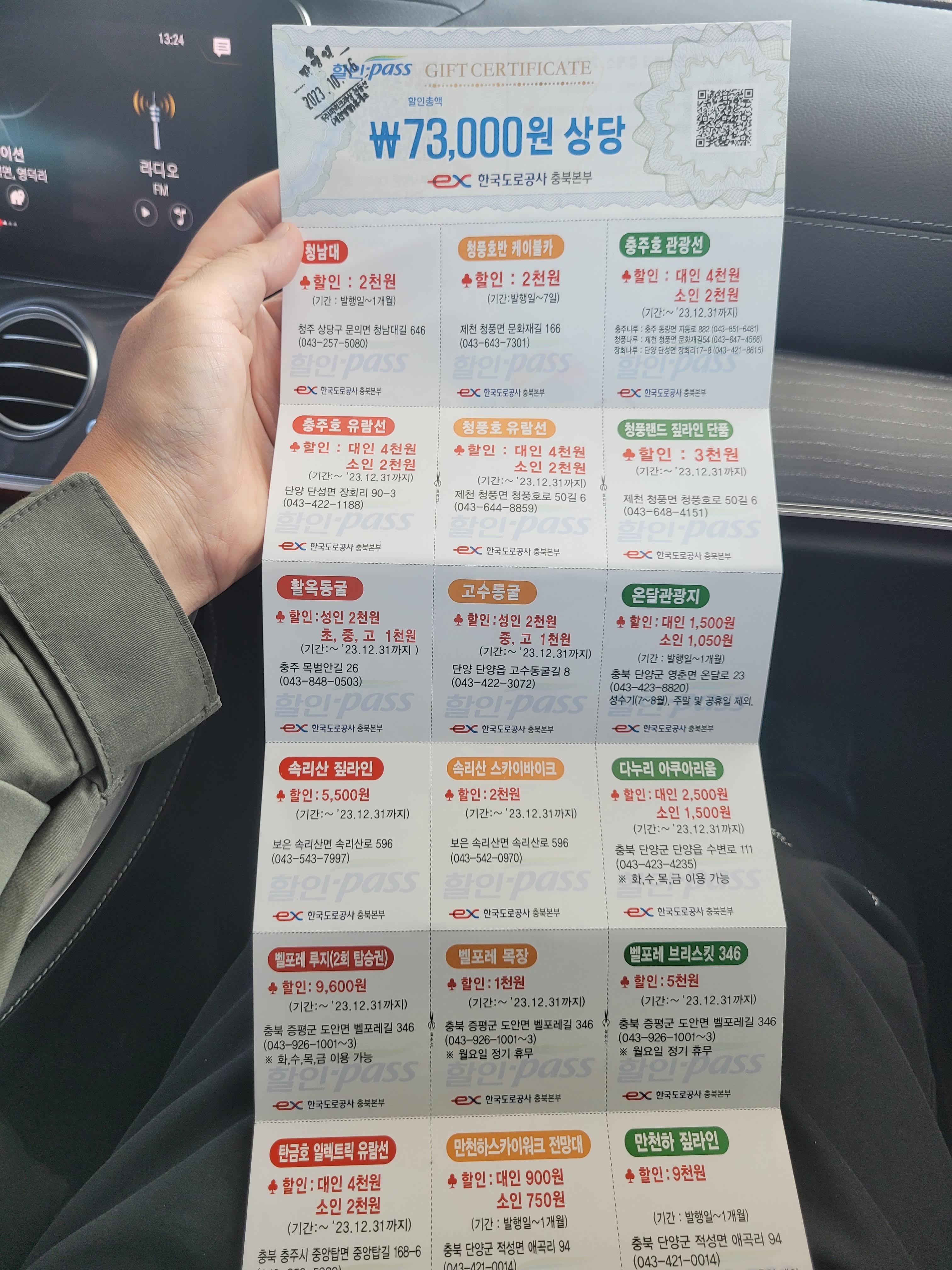 중간에 휴게소에서 밥을 먹고 보니 한국도로교통공사에서 충북지역 쿠폰을 준다. (1만원 이상 사용시)