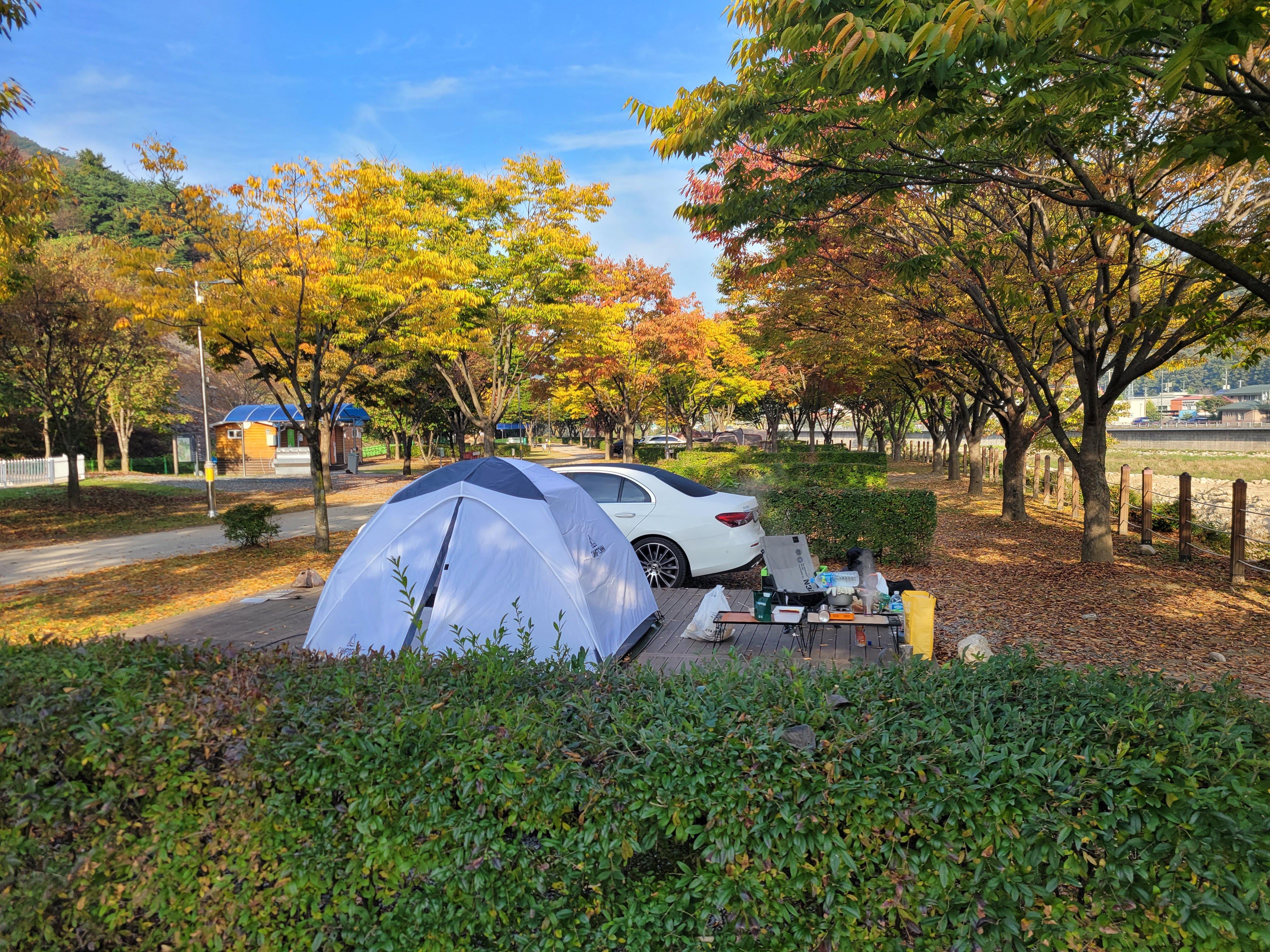 2박 야영지인 대걍 오토캠핑장으로 이동해보니 사람도 거의 없고 단풍으로 물든 나무들이 우릴 반겨주었다.