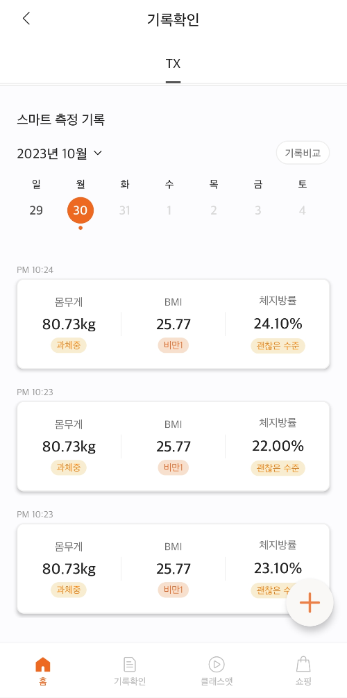 얼마나 큰 정확도를 주는지 확인하기 위해 반복하여 측정을 해봤는데 옷을 입고 재면 정확도가 많이 떨어지며 옷벗은 상태에서 반복 측정하게 되면 결과는 비슷하게 나온다. 정확한 측정을 한다면 나의 경우에는 3회 측정을 하고 min/max 버린 후 중간 데이터를 사용한다.