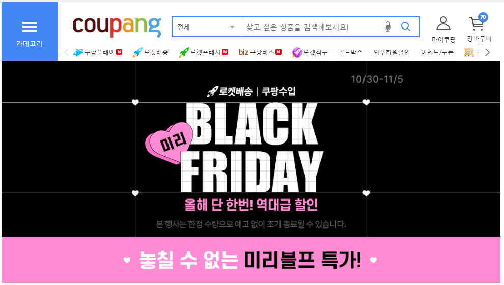 | [쿠팡] 이벤트/프로모션 소개 - 글로벌 블랙프라이데이 (0) | 2023.11.24 |